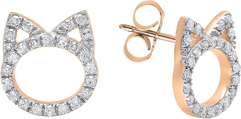 JewelAngel 10K White Gold Diamond Accent Cute Cat Stud Earring