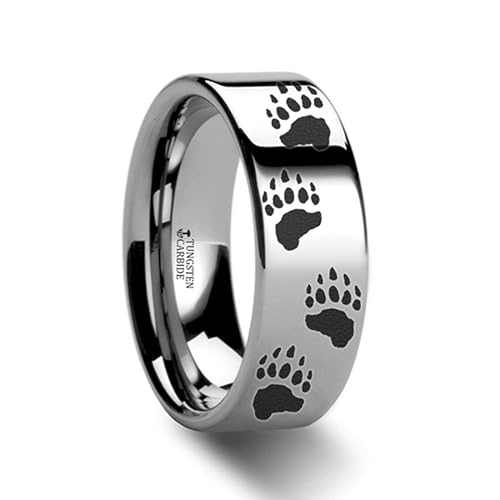 BEAR PAW Animal Track Bear Paw Print Engraved Ring Tungsten Ring Polished