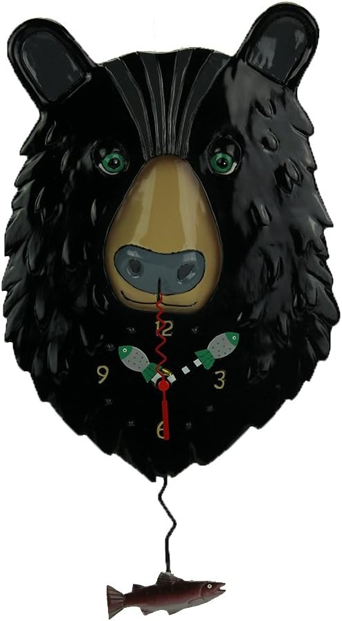“Burly Bear” Whimsical Bear Face Pendulum Wall Clock