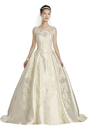 Source: Mikado Oleg Cassini Illusion Cap Sleeve Wedding Dress Style CWG701 at Amazon Women’s Clothing store: