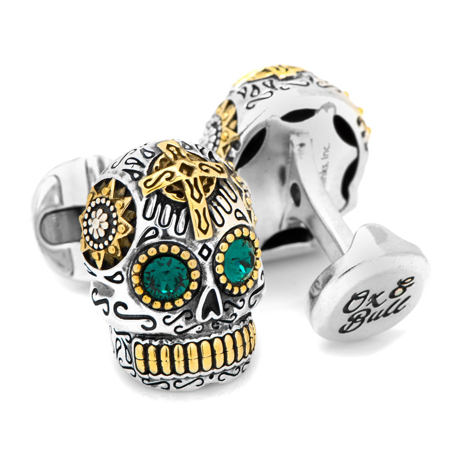 Sterling Silver and Gold Day of the Dead Skull Cufflinks