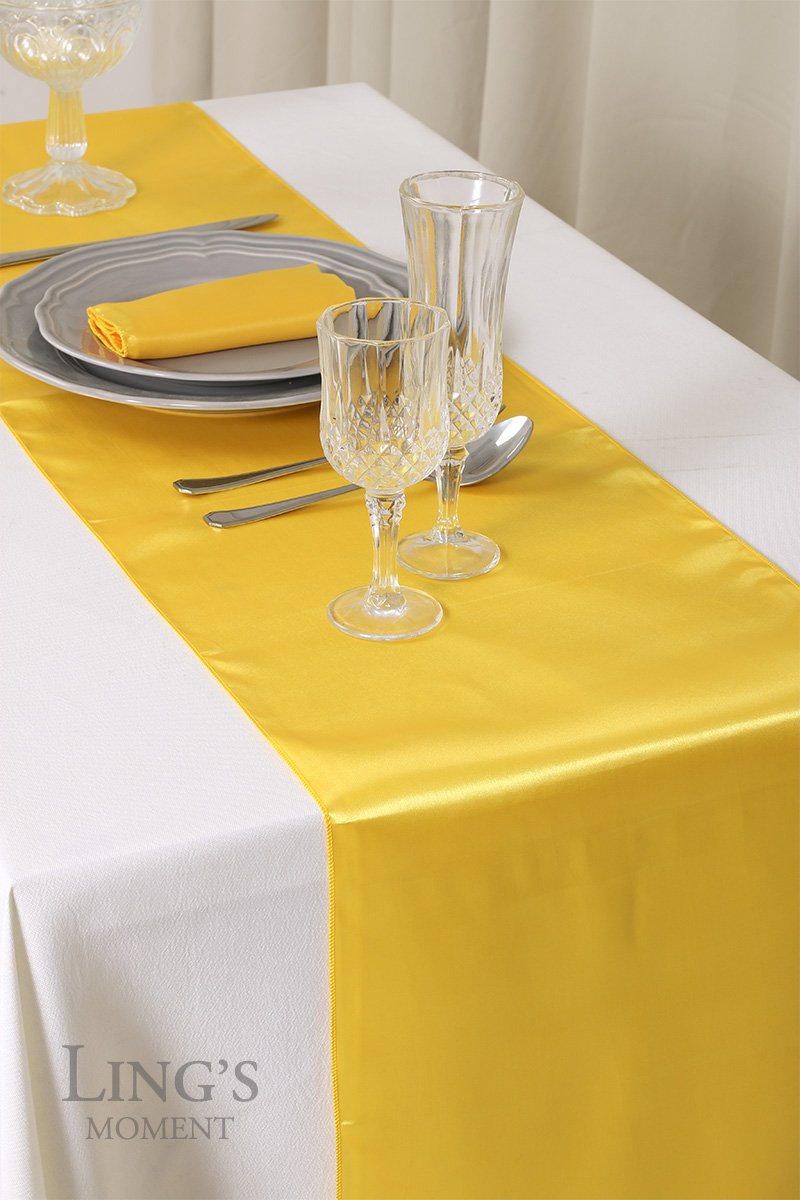 Ling’s moment Satin Table Runner Banquet Decorations for Weddings, Yellow 12×108 Inch, Pack of 10