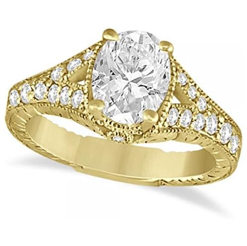 14k Gold Antique Style Art Deco Oval Cut Diamond Engagement Ring 1.03ct